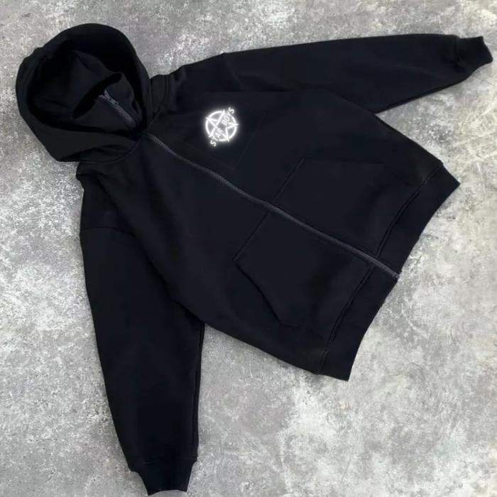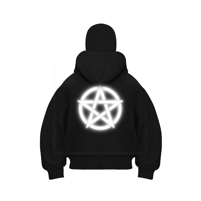 SWEATER HOODIE BALACLAVA ZIPPER STAR MENYALA JAKET BOXY HITAM UNISEX DISTRO FLEECE TEBAL - STAR BOYS, M
