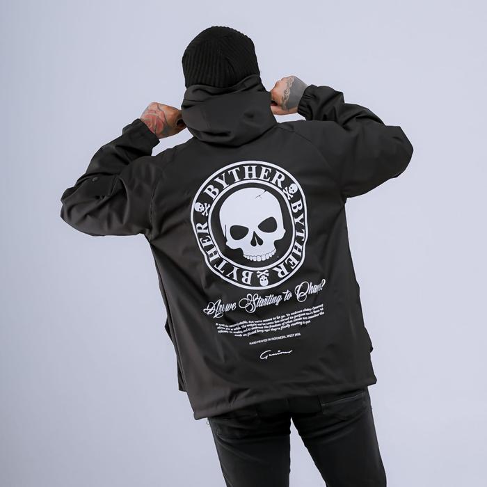 JAKET CASUAL HOOLIGAN SKUL BYTHER HITAM DISTRO PREMIUM - JAKET PARASUT PRIA - HITAM, L