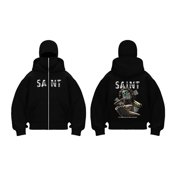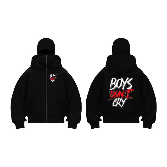 HOODIE BALACLAVA ZIPPER VIRAL JAKET BOXY HITAM POLOS KEREN TERBARU 2025 - HITAM001, M
