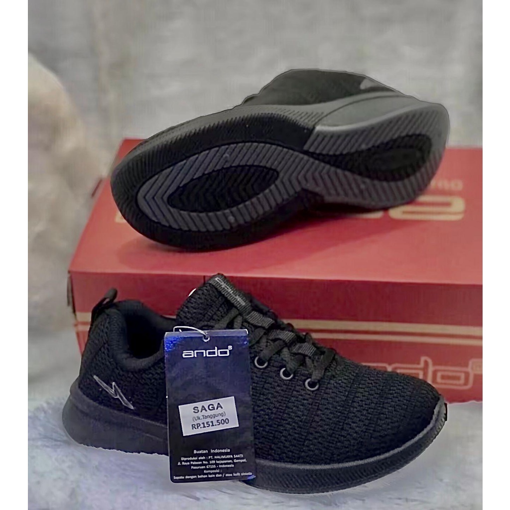 Promo Sepatu Ando Saga-Bsc Tali Uk 33-40 HITAM PUTIH-HITAM HITAM Sneakers Anak Sekolah Fashion