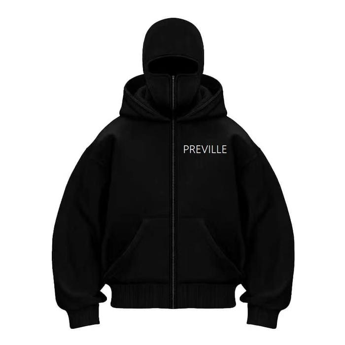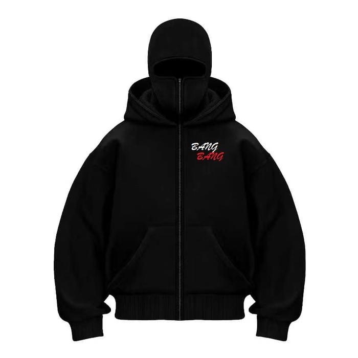 JACKET MASK HOODIE BALACLAVA UNISEX METAL ZIPPER JAKET BOXY HITAM UKURAN M-XL - GAMBAR 01, M