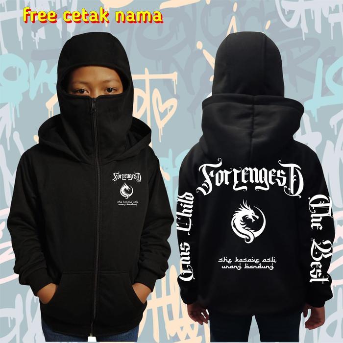 ONE E VEERO JAKET BALACLAVA ANAK COWOK DAN CEWEK DISTRO HOODIE BAHAN KATUN FLEECE PREMIUM TEBAL GSM 280 - FASHION - HITAM 1, M