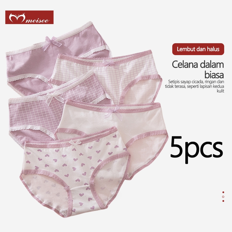 MEISEE 5 PCS Celana Dalam Wanita Katun Elastis Pinggang Tengah CD Wanita