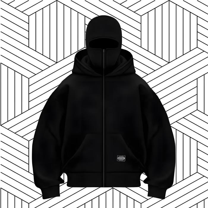 BALACLAVA HOODIE ZIPPER BROOKLYN HITAM NINJA 280GSM - JAKET HOODIE BOXI CALIFORNIA PREMIUM UNISEX - HITAM BXI CALIFORNIA, ANAK 6-8 TAHUN