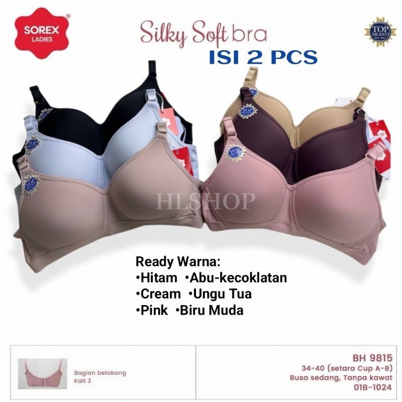 Isi 2 PCS Bra Sorex 9815 Busa Tanpa Kawat Silky Soft BH Setara Cup B Kait 3