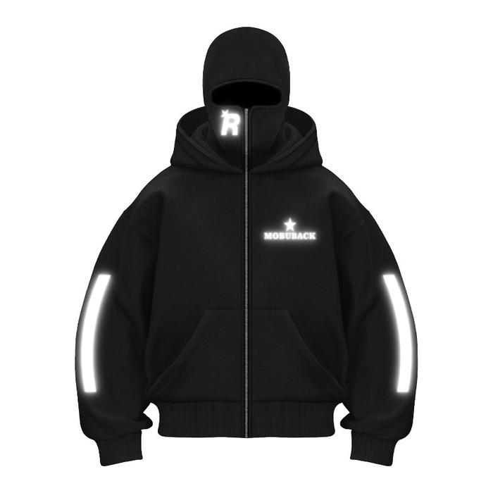 MOBUBACK SWEATER HOODIE BALACLAVA MENYALA DALAM GELAP REFLECTIVE ZIPPER NYALA JAKET BOXY REFLEKTIF ROCKSTARS UNISEX PRIA WANITA BAHAN 280GSM TEBAL KEREN TERBARU 2025 - ROCKSTARS, M