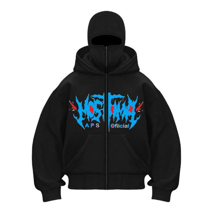 APS HOODIE BALACLAVA NSTM UNISEX METAL ZIPPER JAKET BOXY HITAM UKURAN M-XL JAKET NINJA - GAMBAR 01, M