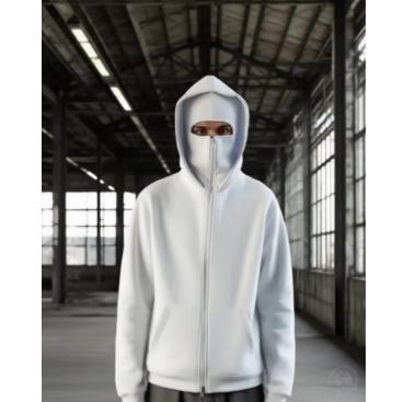 JAKET NINJA HOODIE BALACLAVA ZIPPER JAKET BOXY HITAM FLEECE TEBAL UNISEX - HITAM, M