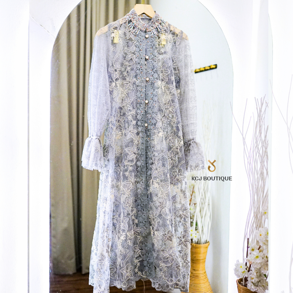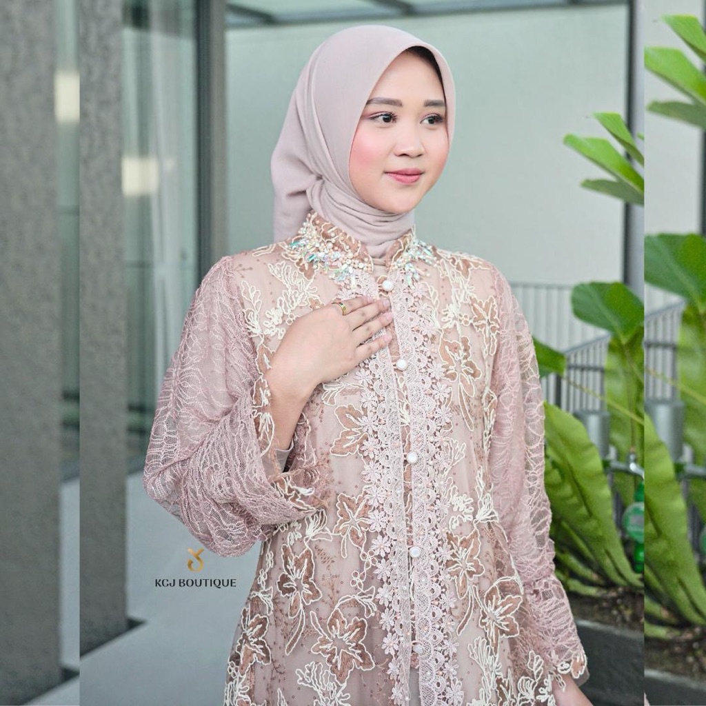 KCJ Dress YASMIN Tile Bordir Kombinasi Brukat dan Payet Set Inner Dalaman