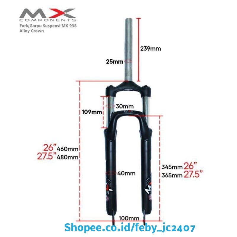 Garpu / Fork Sepeda MTB 26 inch MX Trex el slup tidak ada drat