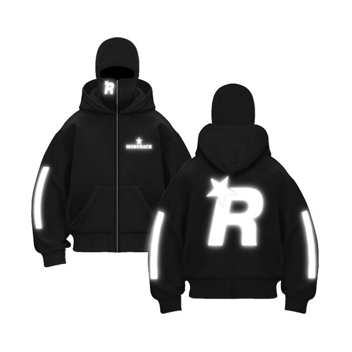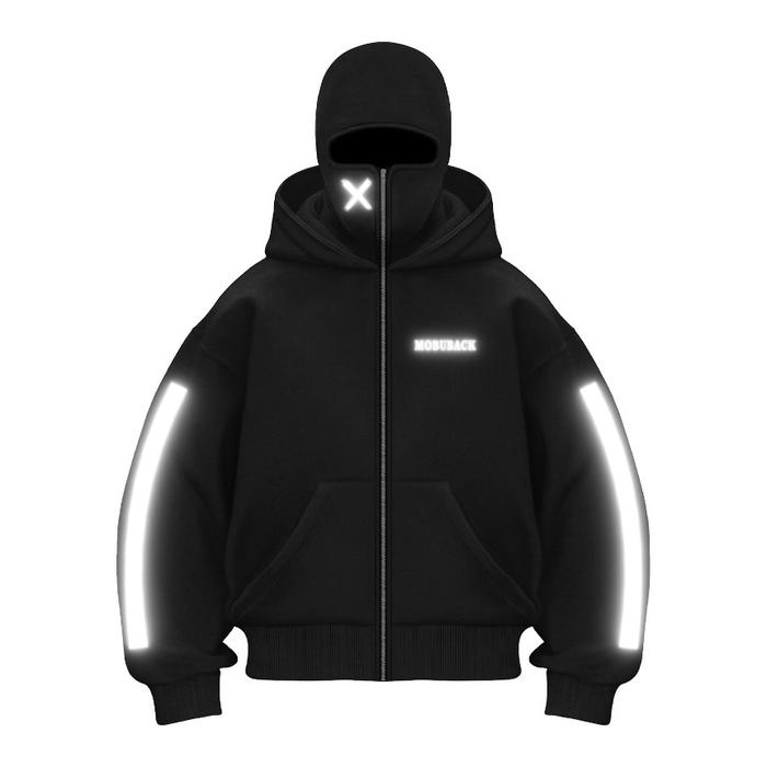 MOBUBACK SWEATER HOODIE BALACLAVA MENYALA REFLECTIVE ZIPPER JACKET BOXY REFLEKTIF NYALA XTREME BAHAN TEBAL 280 GSM PREMIUM DISTRO JUMPER UNISEX PRIA WANITA TERBARU 2025 - XTREME, M