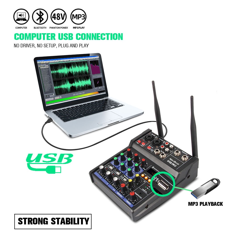 Professional Audio Mixer G4B-PRO Included wireless microphone UHF Support recording / mixer audio / mixer audio murah