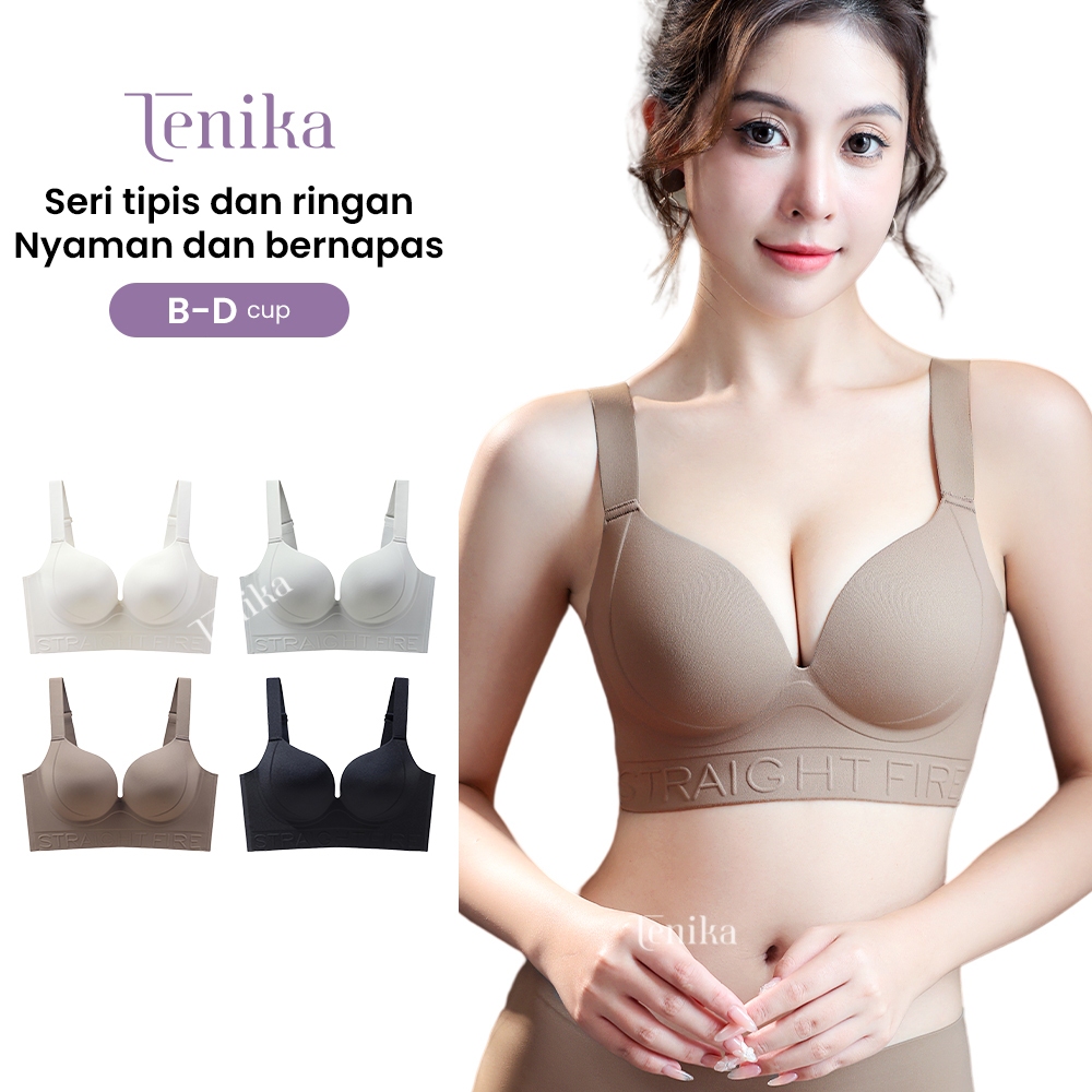 Tenika Bra Tanpa Kawat – Desain Huruf Stylish, Support PD Besar, Angkat & Bentuk Payudara, Nyaman & Lembut