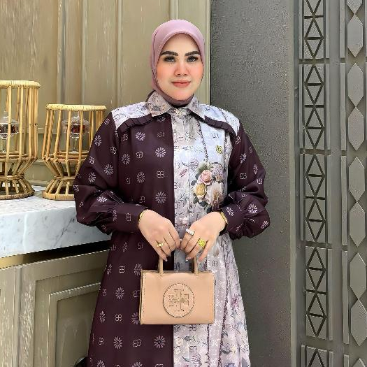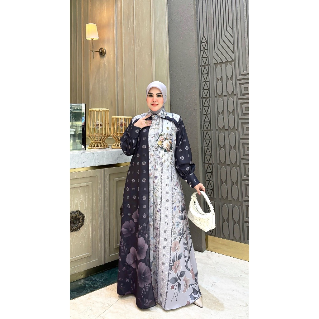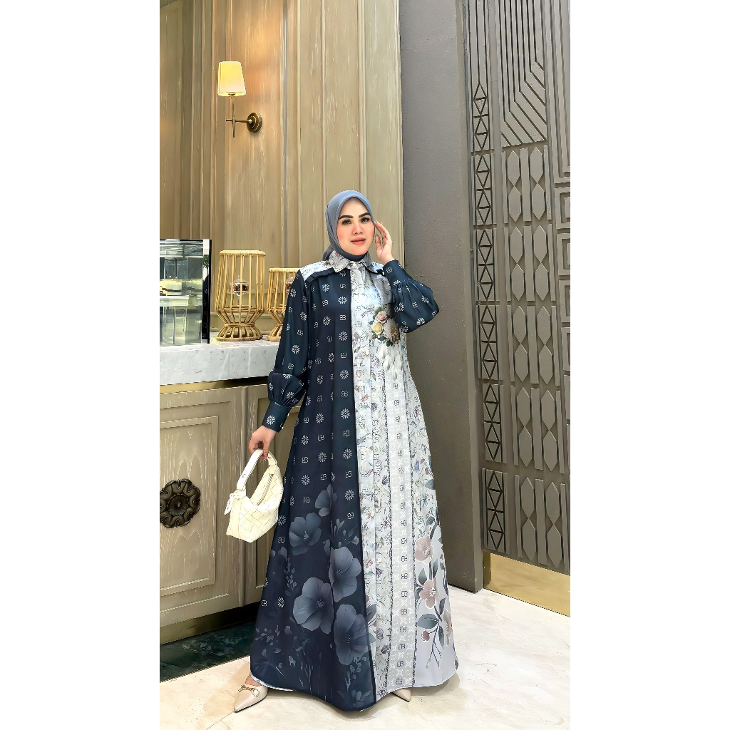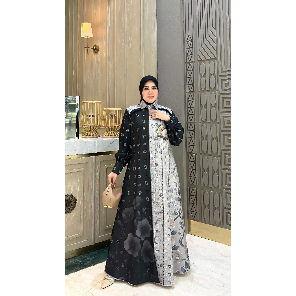 BELIFI Chandani Shirtdress Gamis Two Tone Mewah Motif Kombinasi Unik Asimetris Elegan