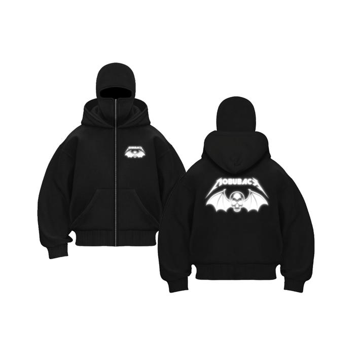 JACKET HOODIE BALACLAVA MENYALA REFLECTIVE ZIPPER BOXY REFLEKTIF NYALA ASSASIN'S UNISEX PRIA WANITA BAHAN 280GSM PREMIUM - BAT SKULL, M