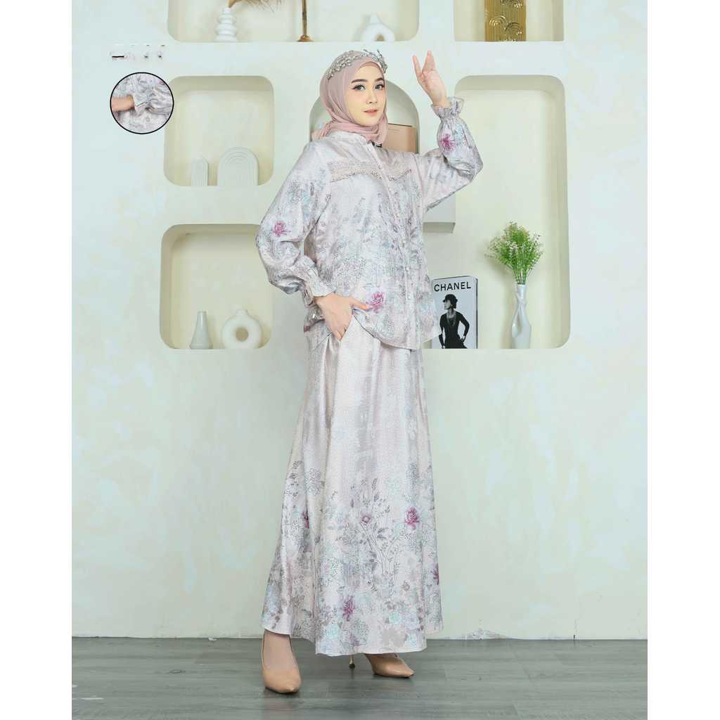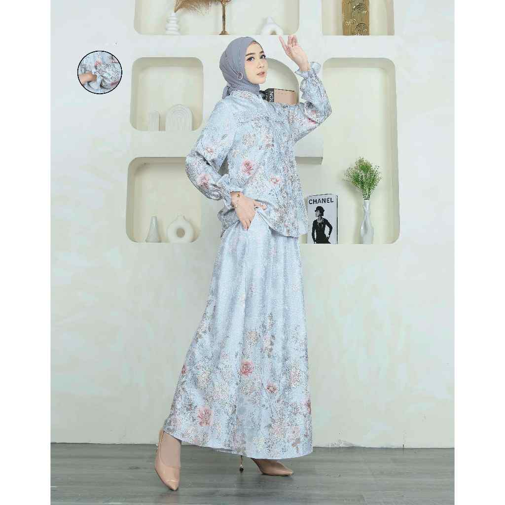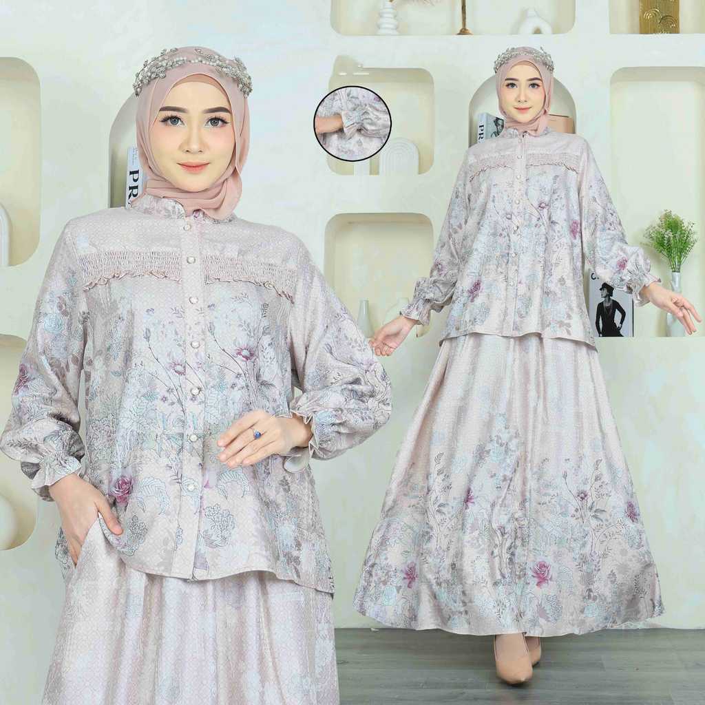 Amaryllis Set Rok One Set Lebaran Setelan Wanita Muslim 819 Bahan Valora Jacquard Wudhu Busui Ibu Menyusui Friendly