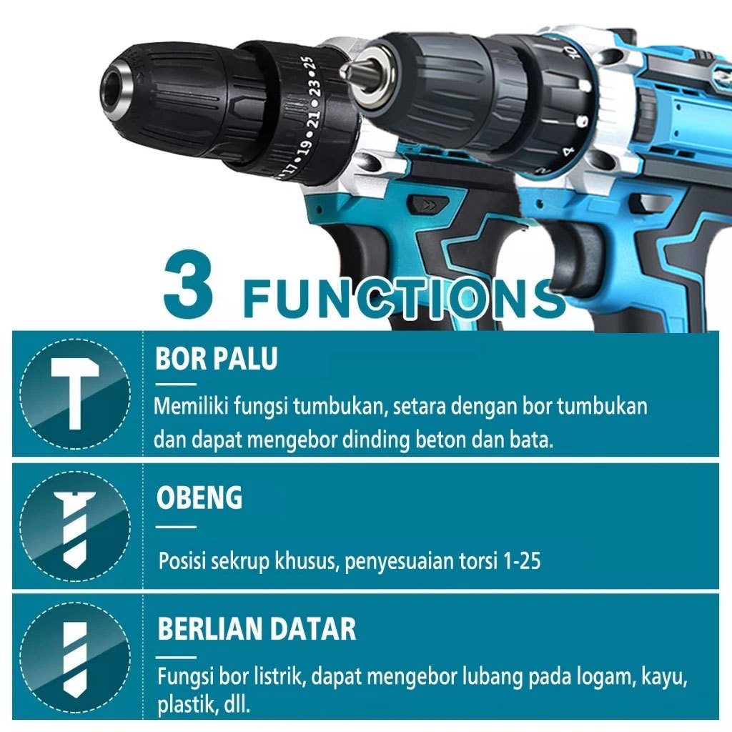 298VF Mesin Bor Impact Drill bor listrik Bor baterai Cordless Drill Bor Listrik Set Bor lengkap mesin Electric Wrench Re