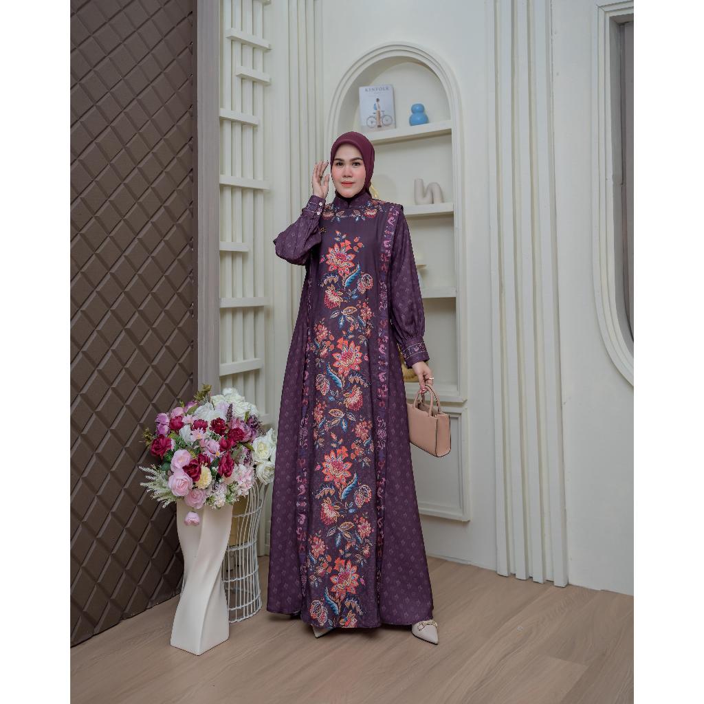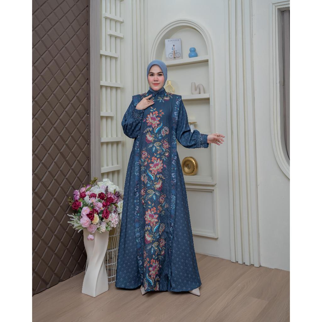 BELIFI Hayfa Fleur Royale Dress Exclusive Printing Gamis Wanita Muslim Aksen Vest Cantik