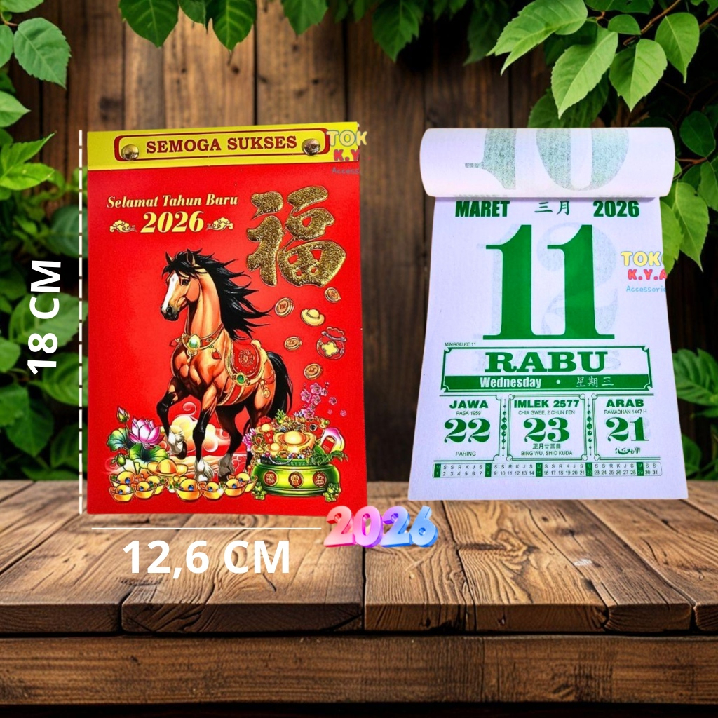 KALENDER HARIAN SOBEK UKURAN SEDANG 2026/KALENDER SHIO KUDA TERBARU 2026/KALENDER 2026