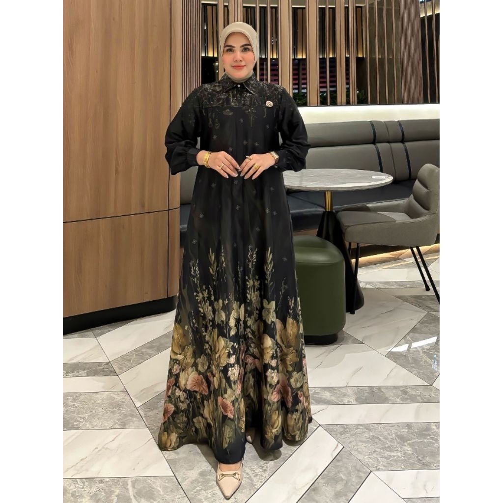 SanliaGamis Dubai Silk Series Hitam Motif Bunga Printing 3D