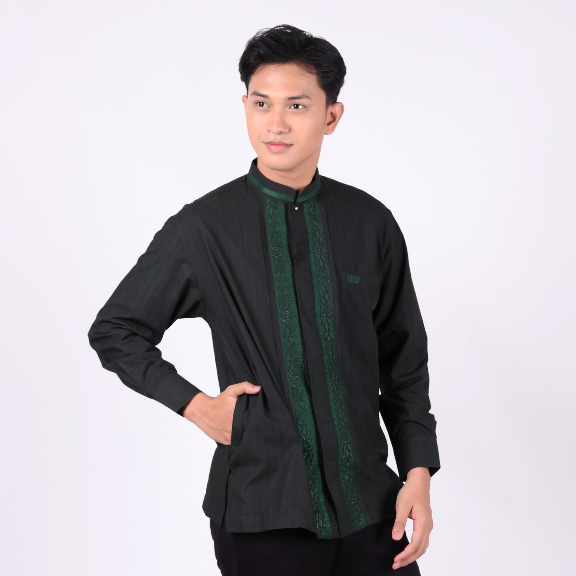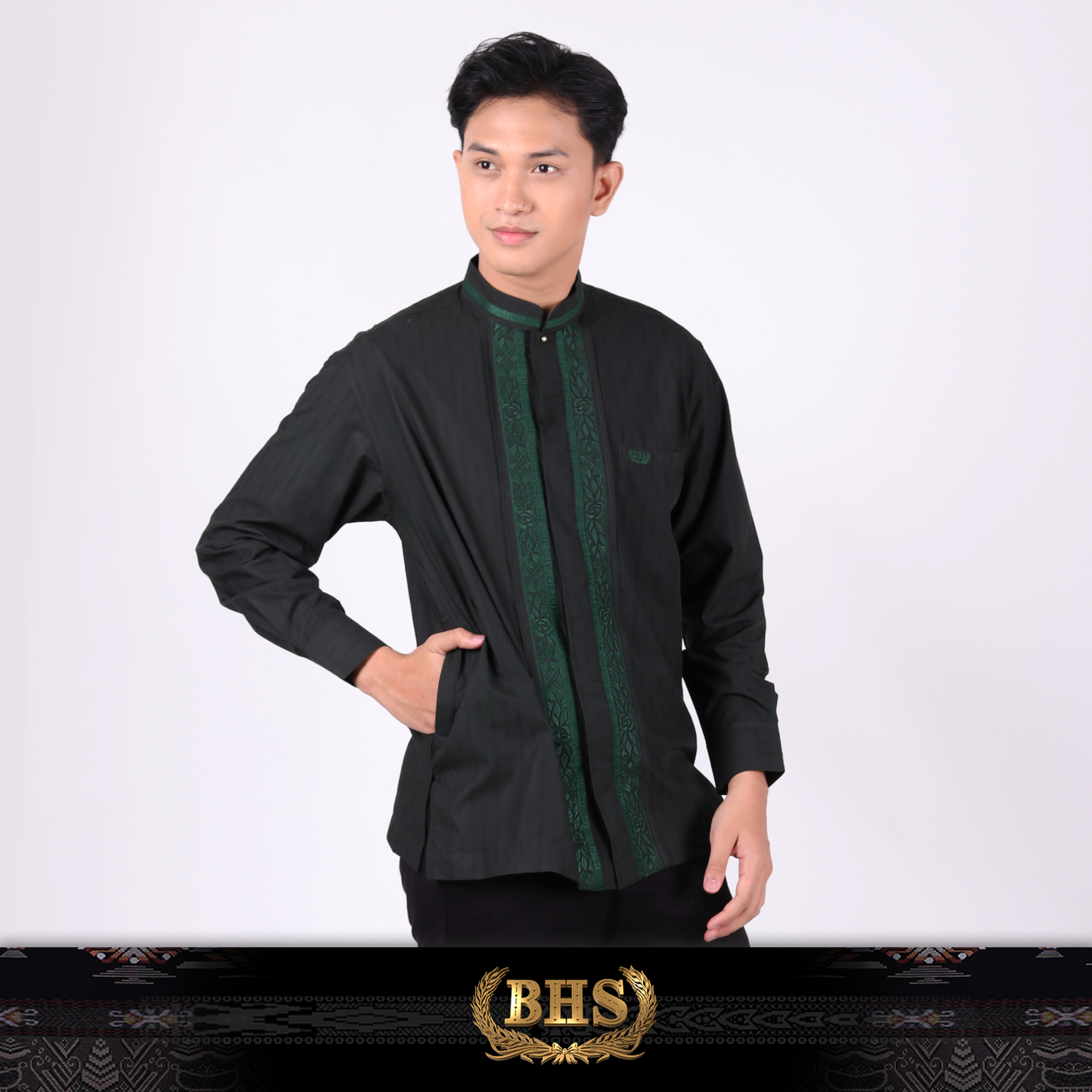 Baju Koko BHS Classic Motif Kombinasi Olive Tua 01