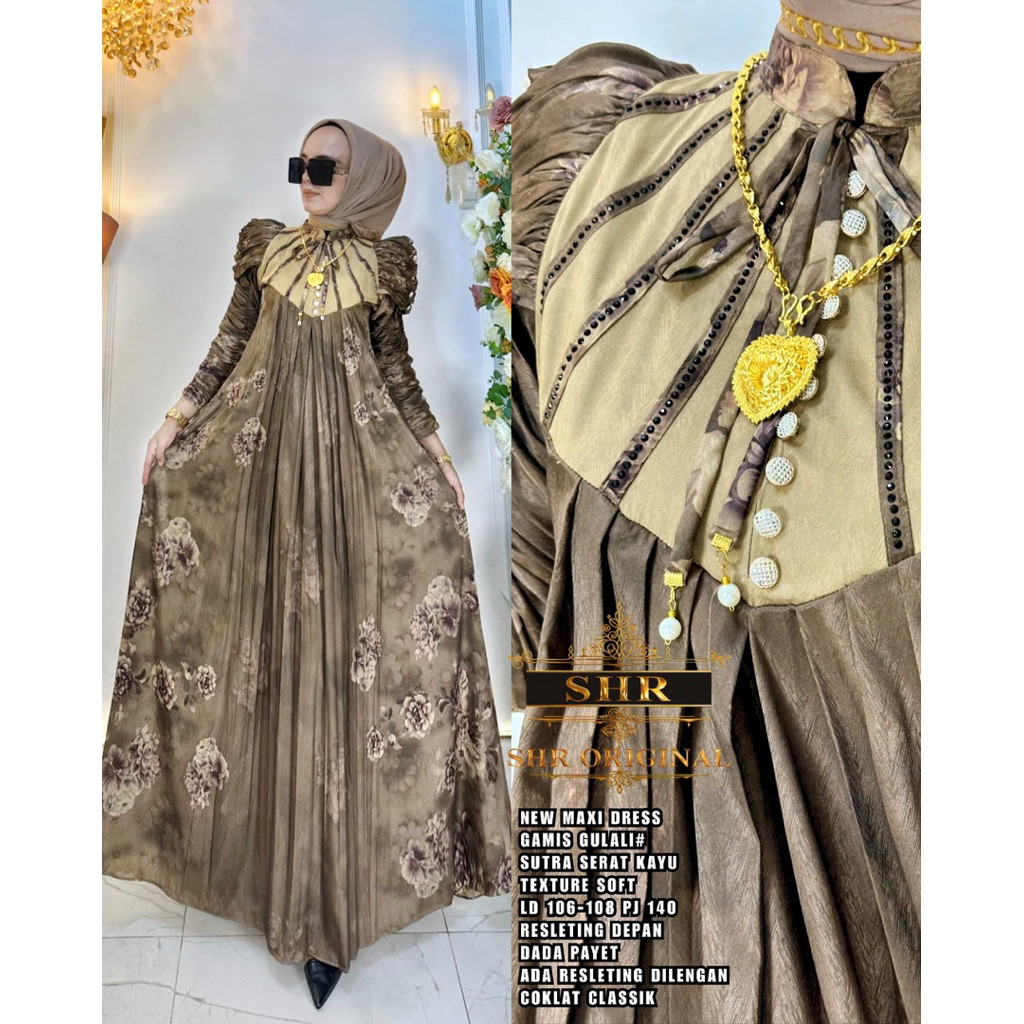 “BY SHR ORI NEW” READY MAXI DRESS RATU PRINCESS MUTIARA LENGAN KERUT SATIN SUTRA SERAT PAYET BY SHR ORI