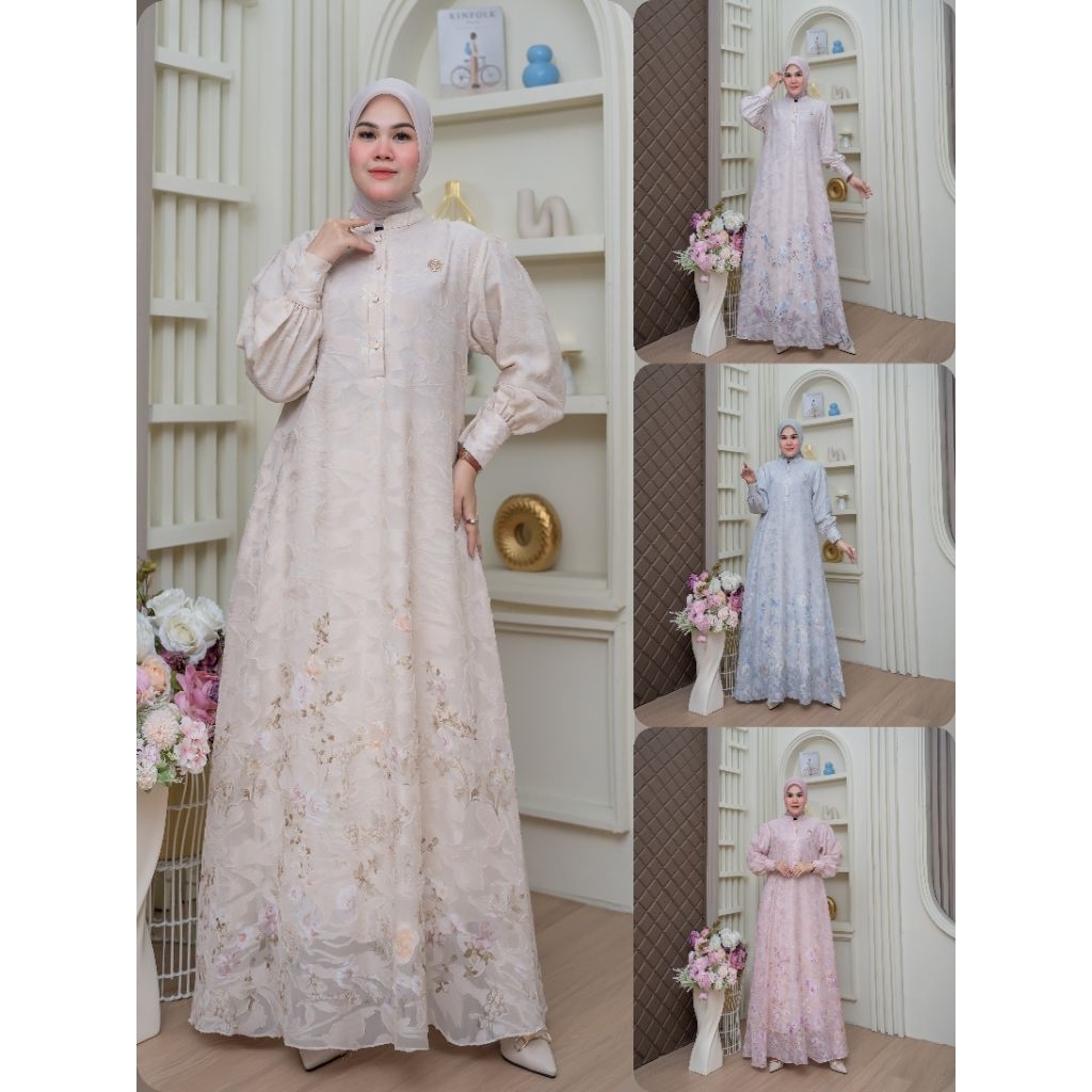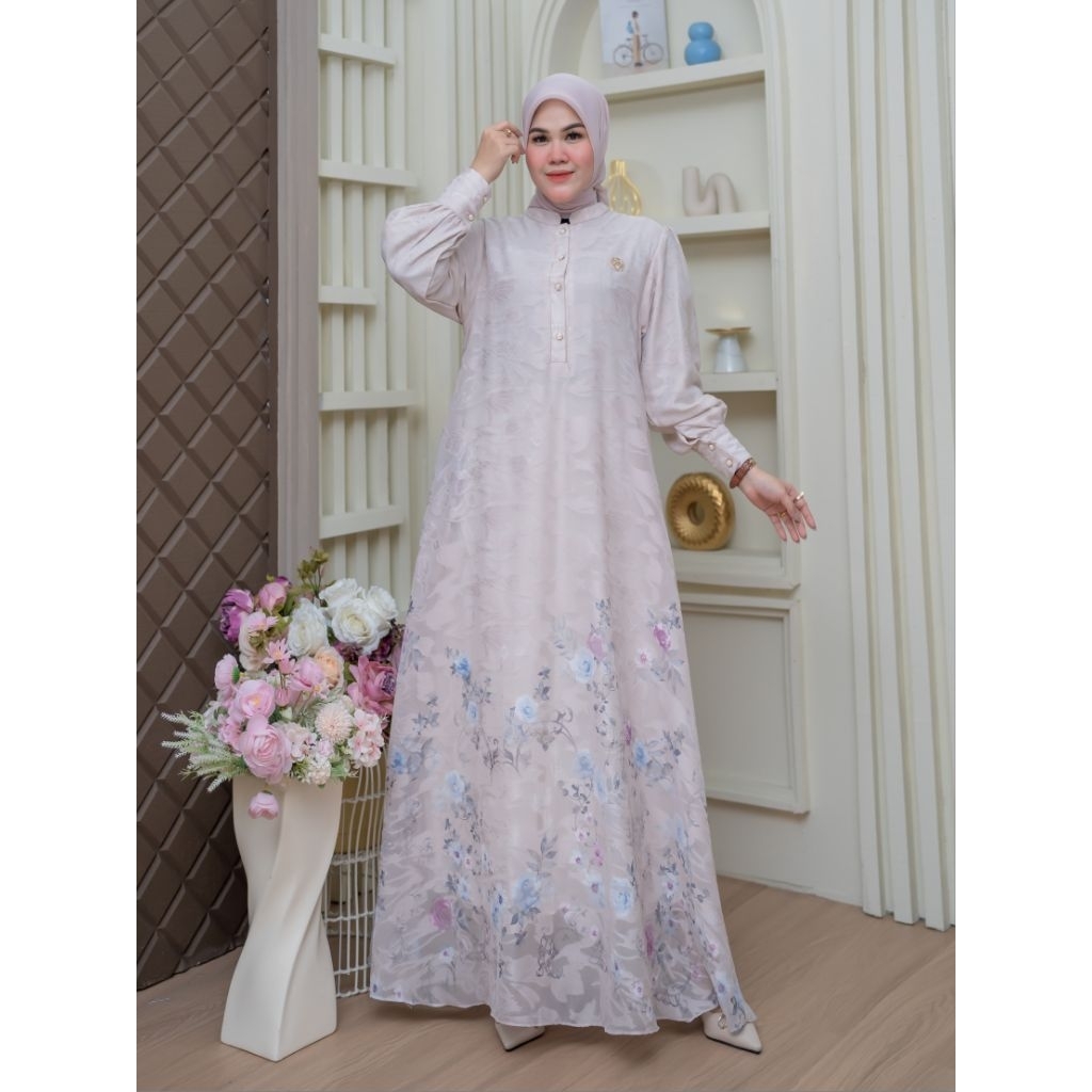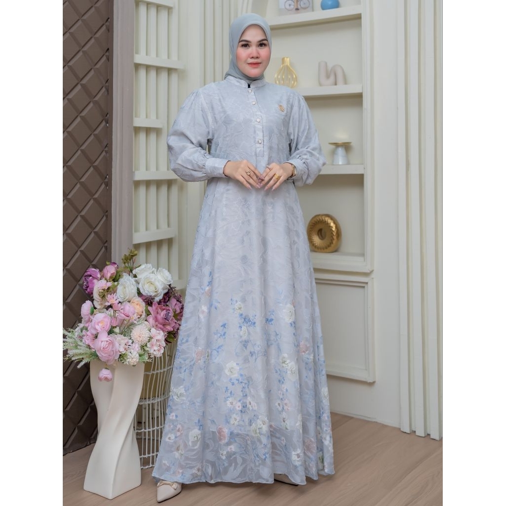 Sanlia Gamis Syifon Chery Gamilah jaguar printing Dress Muslim cocok buat pesta dan pengajian