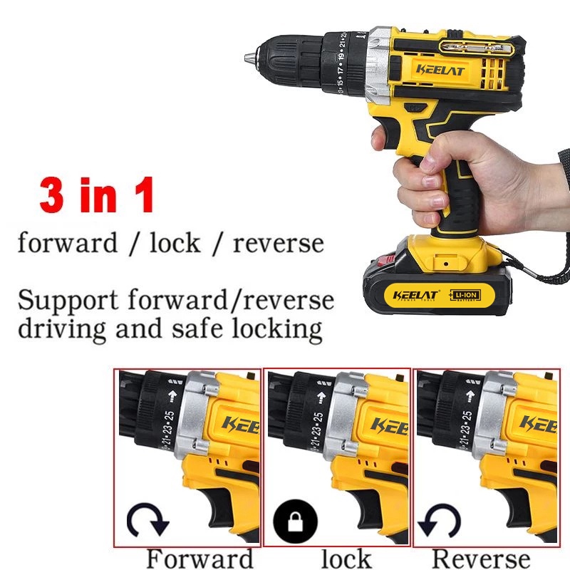 KEELAT-KCD005 10mm 20V Mesin Bor 2 MT Baterai Cordless Impact Drill Screwdriver Multifunction bor listrik Bor Beton Kayu