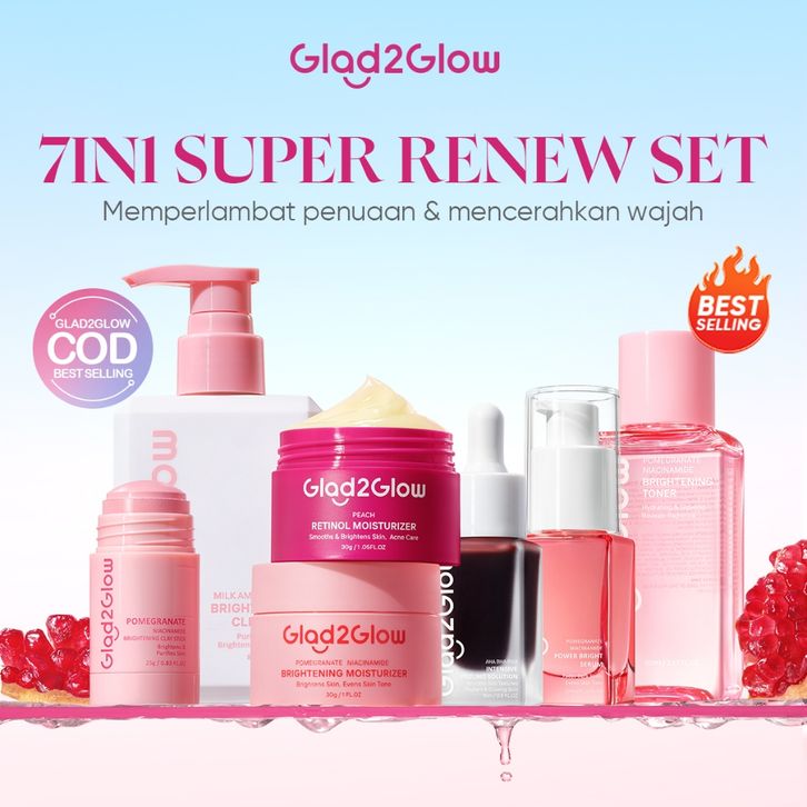 promo 100 ORI Glad2Glow Cerah Glowing & Renew bundle 7in1 7pcsBrightening toner+Brightening Moisturizer+Brightening Cle