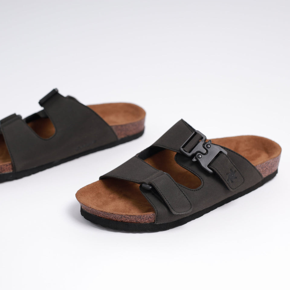 Julaybib Sawan - Black | Sendal Hitam Slippers Casual Original | Sandal Slip Pria Wanita | Vegan Leather