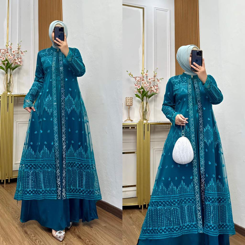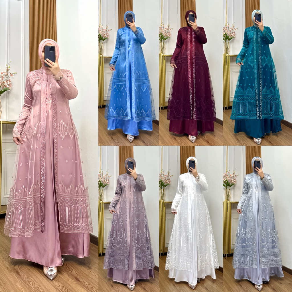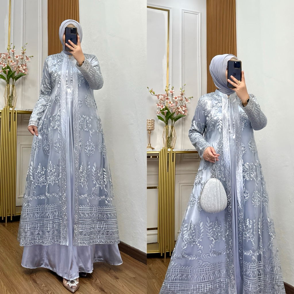 Nadira Dress Busui Bahan Organza Bordir Dengan Detai Payet Mote Gamis Pesta Baju Kondangan Mewah Tersedia Ukuran Jumbo