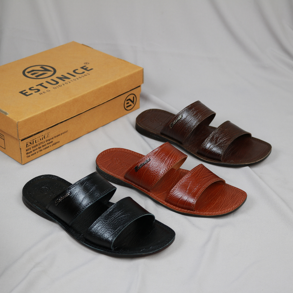 Sandal Kulit Pria Original Premium Sendal Slop Kulit Sapi Asli Motif Kayu