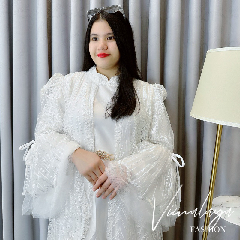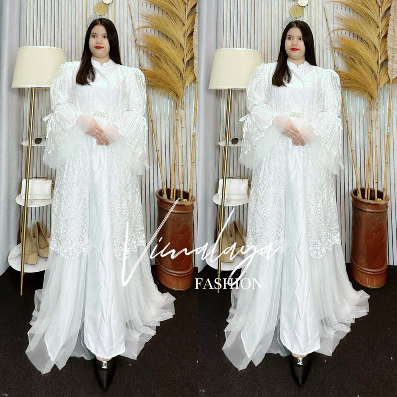 Gamis Putih Tile Bordir Payet Bunga Spangle Kombinasi Bahan Tile 71071 4 Baju Muslim Vima