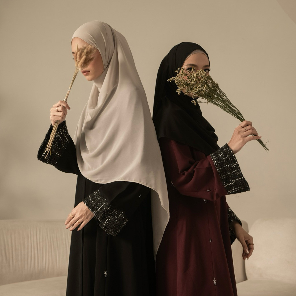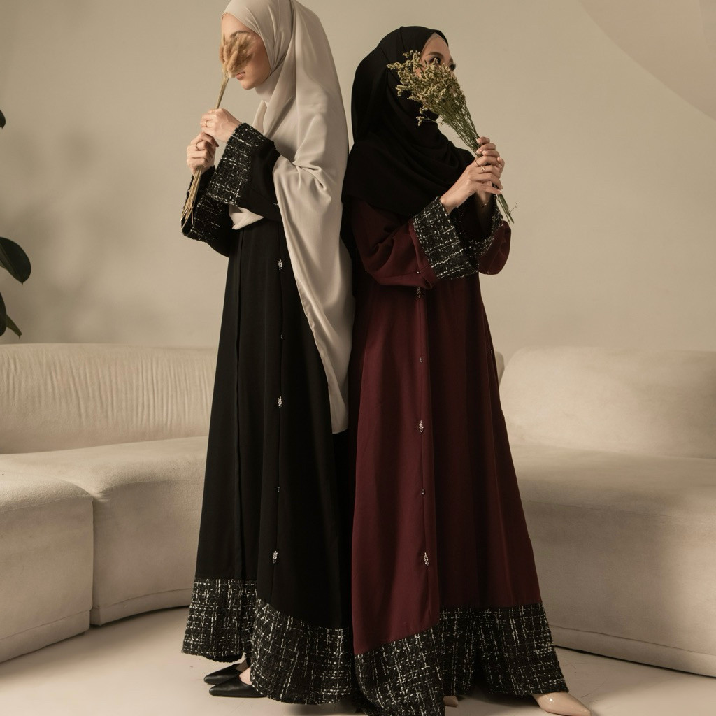 Noir Tweed Abaya – Abaya Tweed Anti UV Premium Busui Friendly Real Tweed Elegan