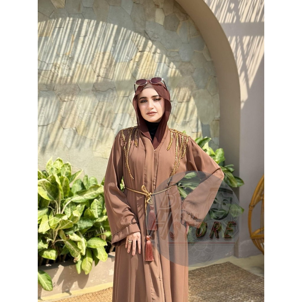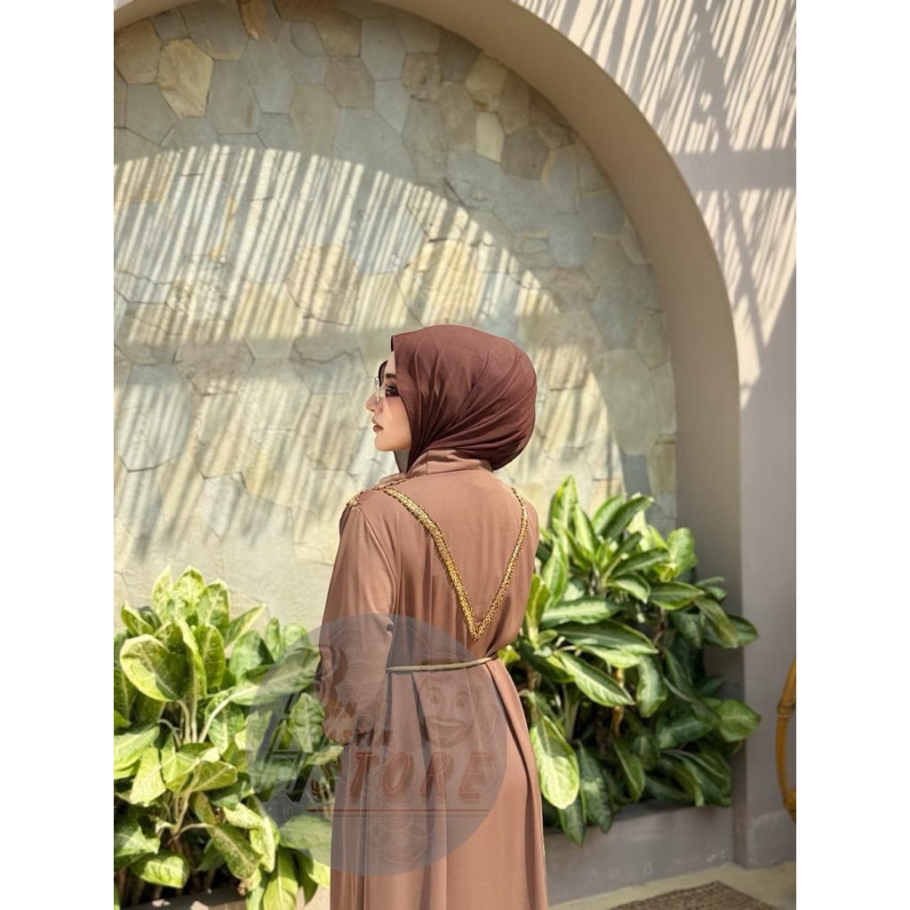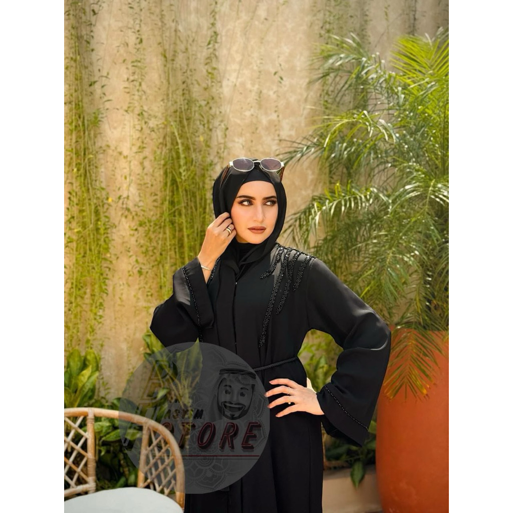 Abaya Aluna Furshan Original Payet Crystal Jahit Free Belt Tassel