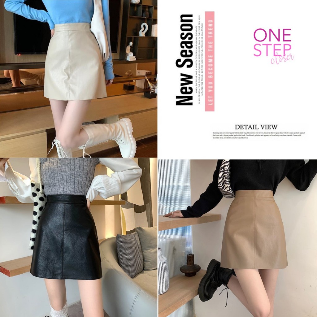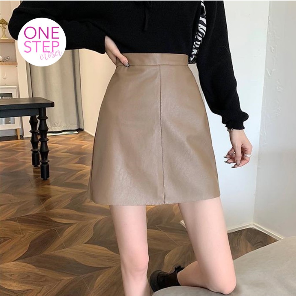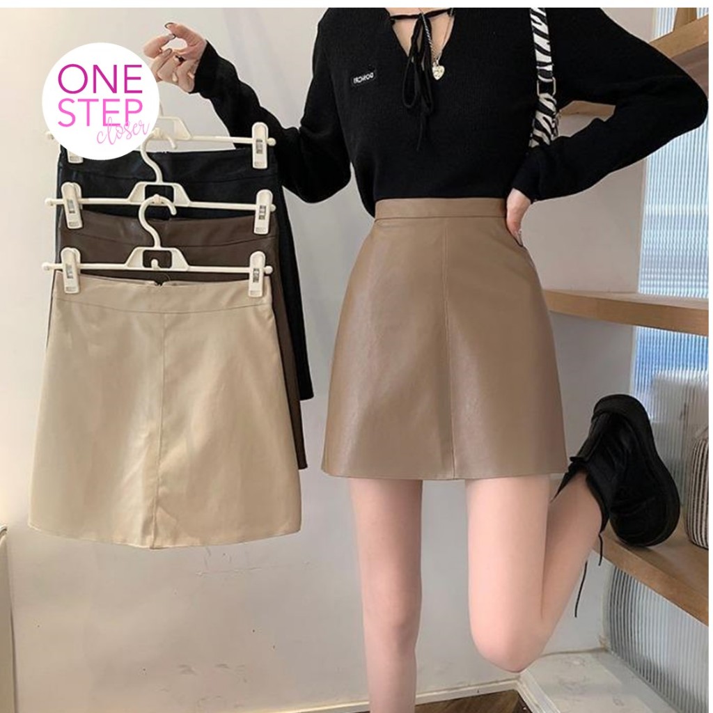 Rok Mini Kulit Sintesis Pendek Simple Korean Style Skirt B1-026
