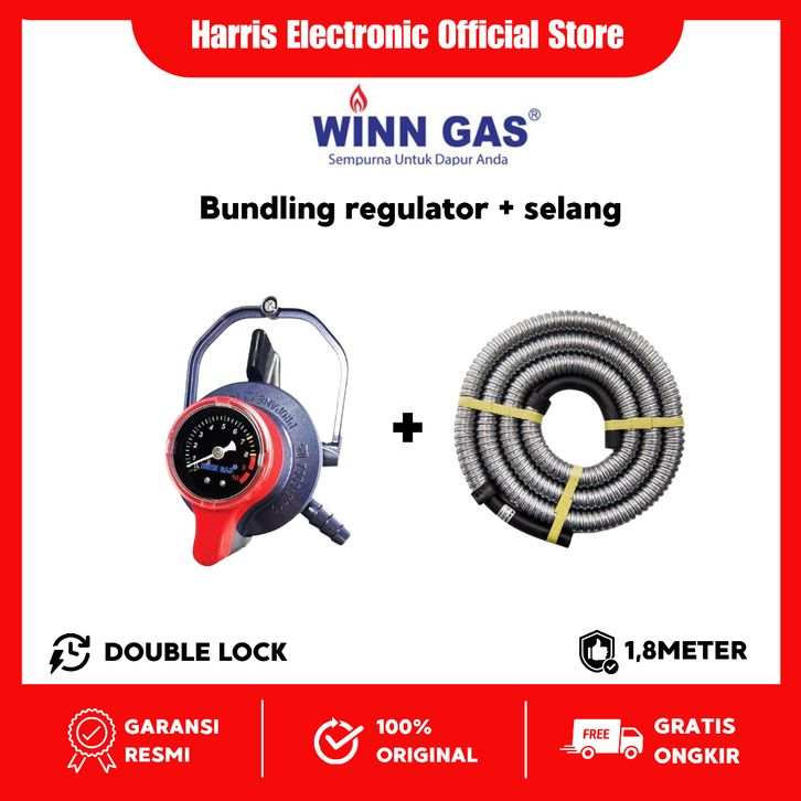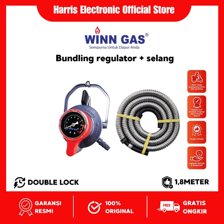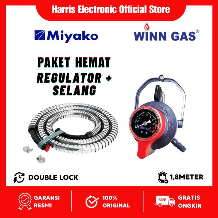 PAKET HEMAT WINN GAS / SUPERLOCK REGULATOR + MIYAKO SELANG GAS LPG DOUBLE LOCK TEKANAN RENDAH