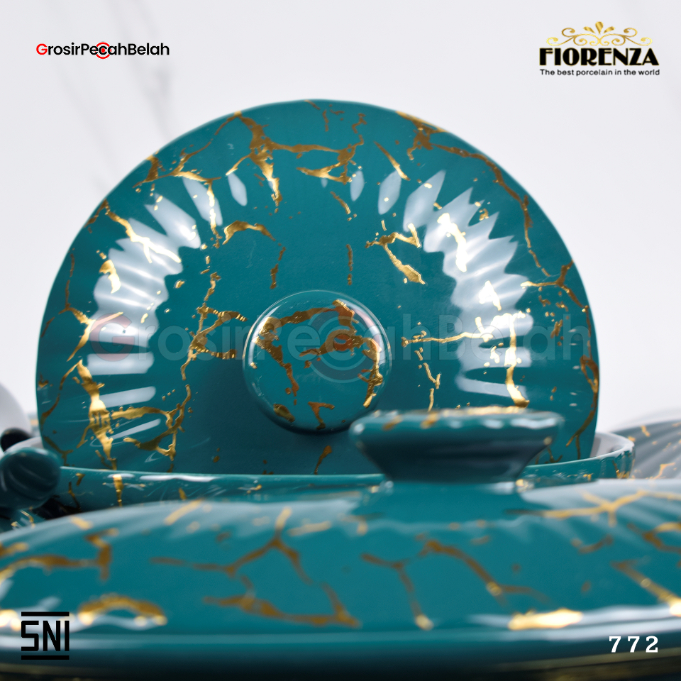 Fiorenza - Prasmanan Putar Keramik Set Wadah Saji Mewah Estetik | Motif Marble Linning Gold Bunga 772
