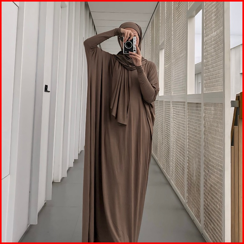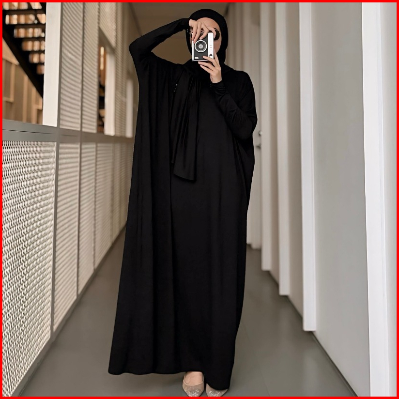 Gonegani - Set Hijab Dan Dress Batwing Plain Set