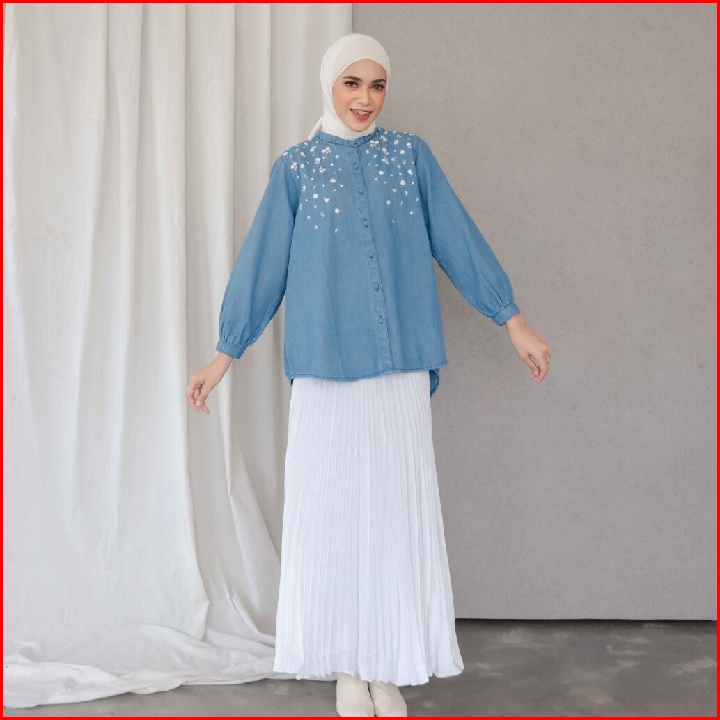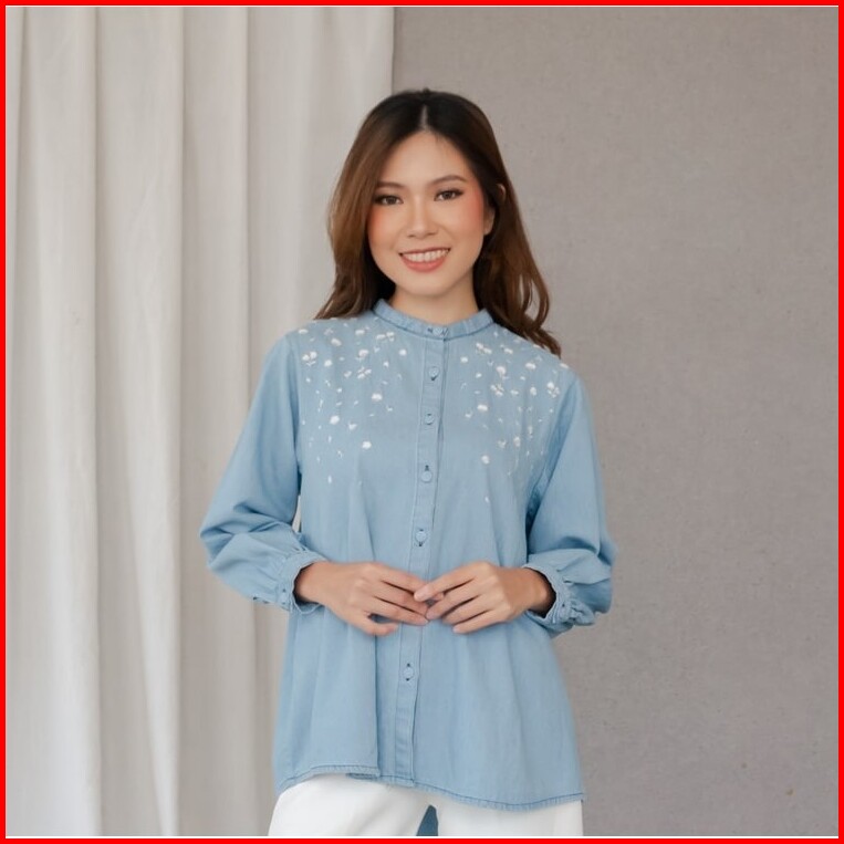 Giyomi Id - Janice Blouse Kemeja Wanita Kemeja Bahan Denim Baju Atasan Wanita