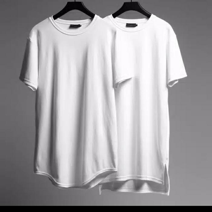BAJU LONGLINE SHIRT TSHIRT PRIA OVERSIZE MODEL KOREA - PUTIH OVAL, S