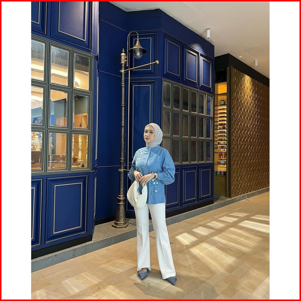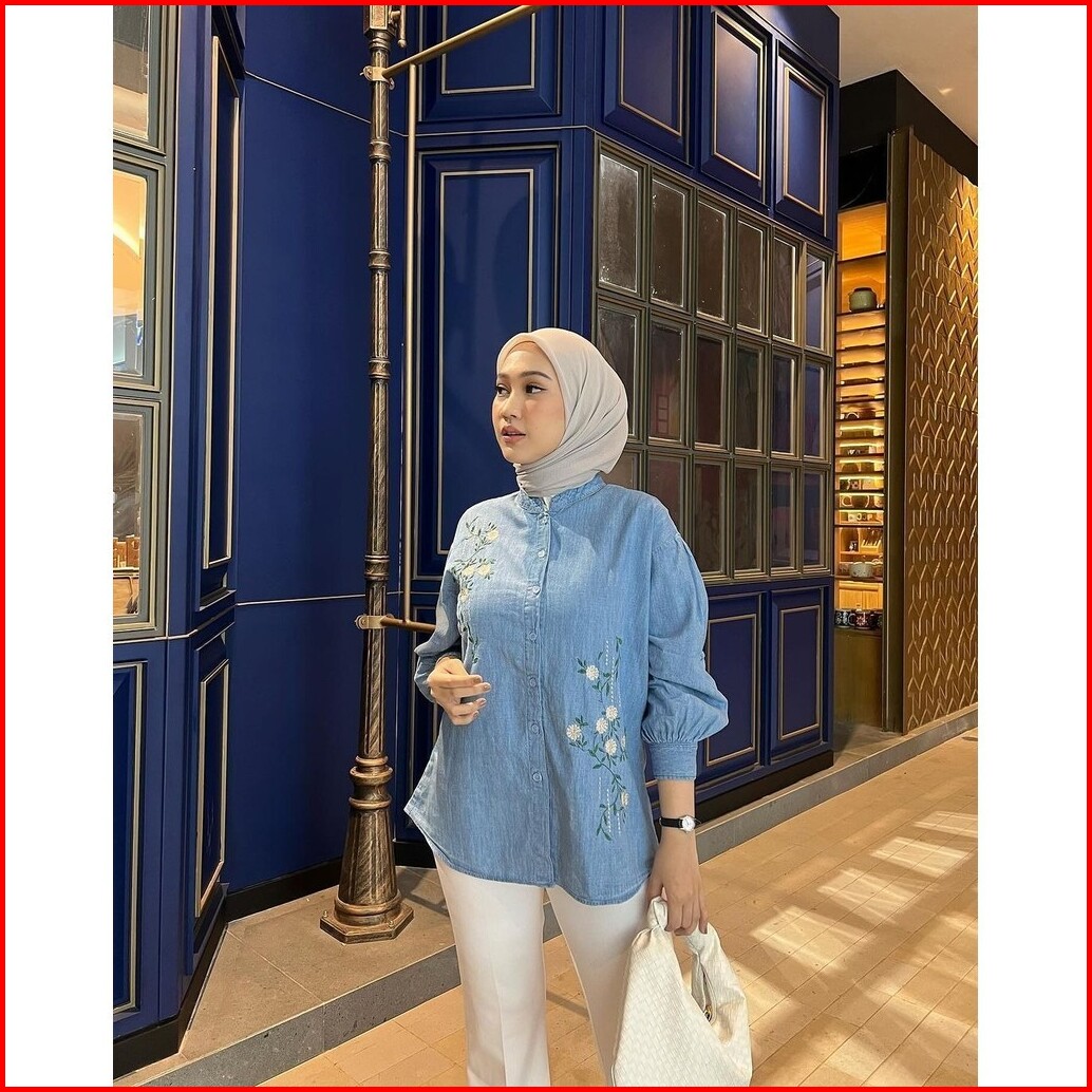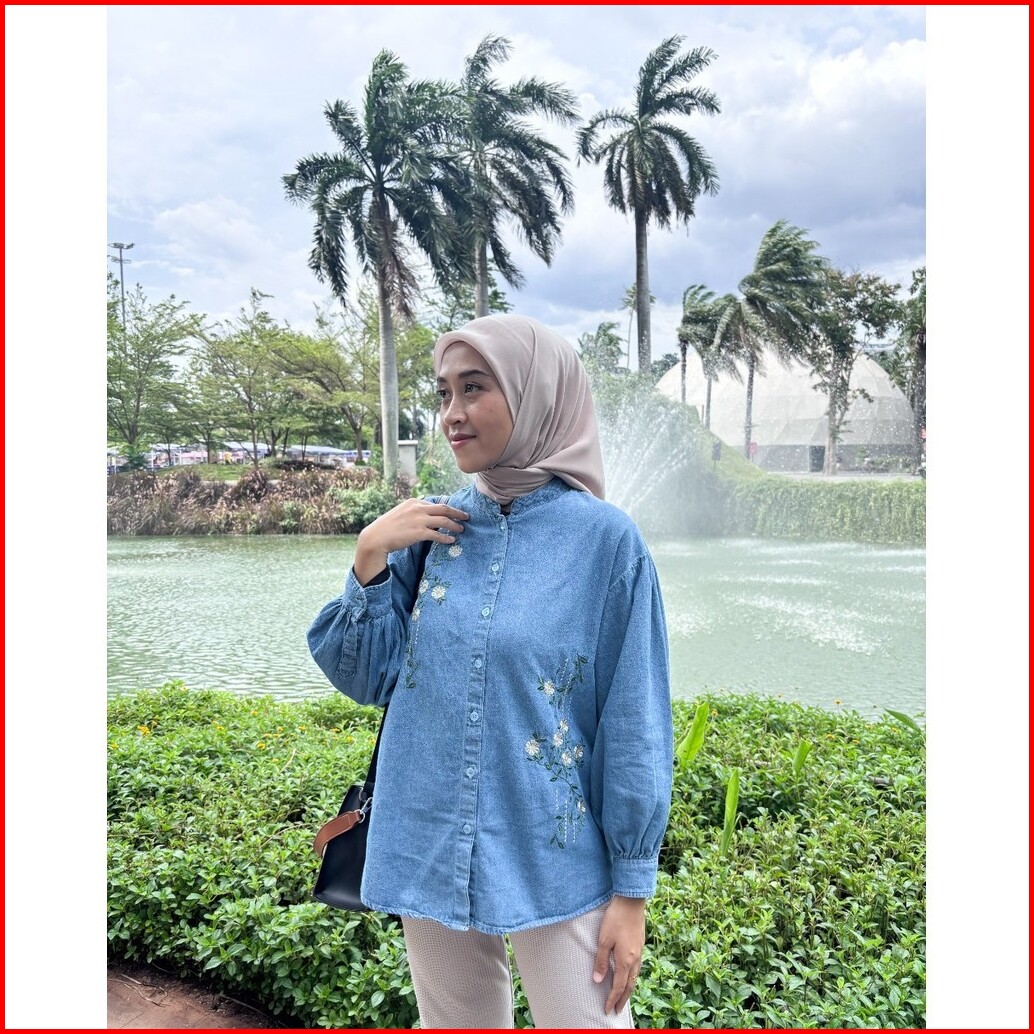 Anyostore Ab70 Kemeja Denim Wanita Bordir