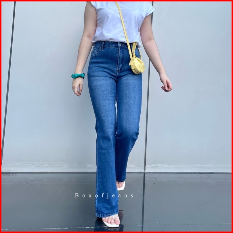 Boxofjeans - Hw Flared Cutbray Jeans - Dark Denim