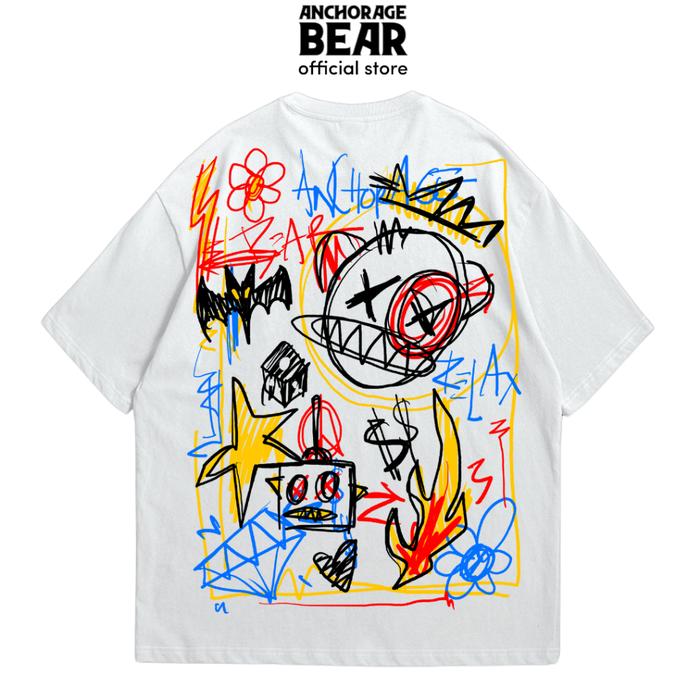 ANCHORAGE BEAR - BASQUIAT TSHIRT OVERSIZE KAOS PRIA DISTRO TERLARIS COTTON HEAVY WEIGHT 16S LIMITED PREMIUM - WHITE - 1