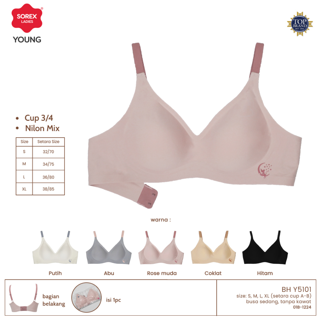 Sorex Young BH Remaja Seamless Busa Sedang Tanpa Kawat Kait 2 Setara Cup B Cup ¾ BH Y 5101