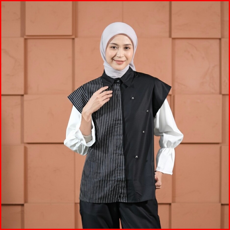Dya Id - Kallu Black Atasan Kemeja Katun Wanita L-3xl