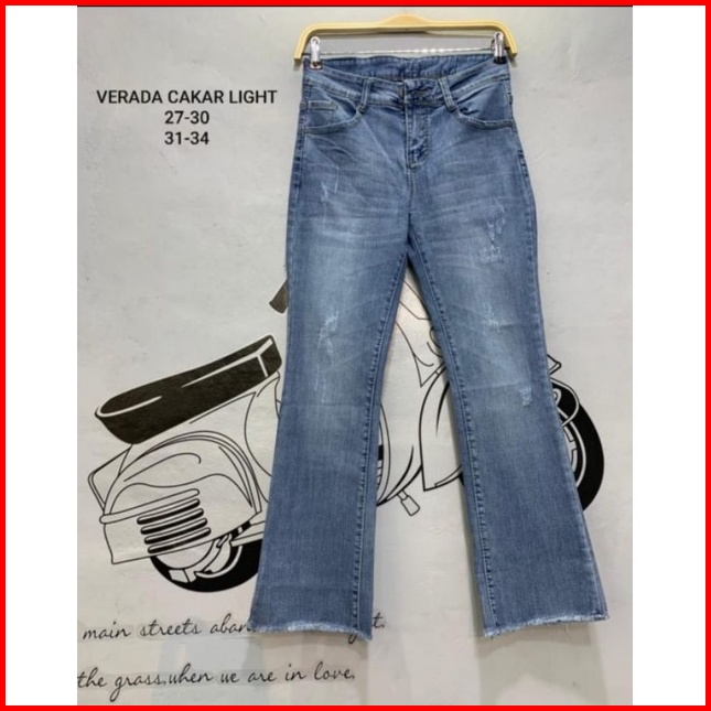 Cutbray Bkk Verada Cakar Premium Jeans Cutbray Sobek Cewek Wanita Bahan Super Stretch Denim Size 27-34
