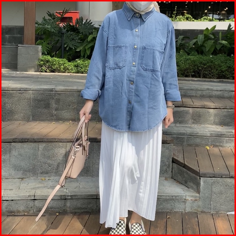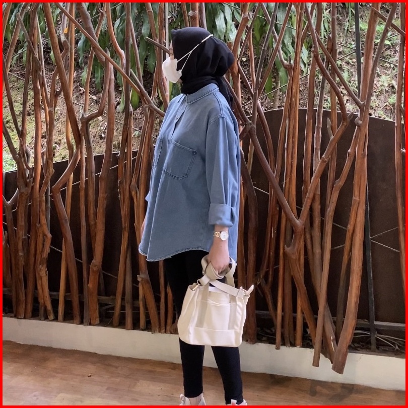 Beeanca - Anna Oversize Shirt Denim Shirt Kemeja Wanita Kemeja Oversize Kemeja Denim Kemeja Busui Baju Korea Kemeja Kore
