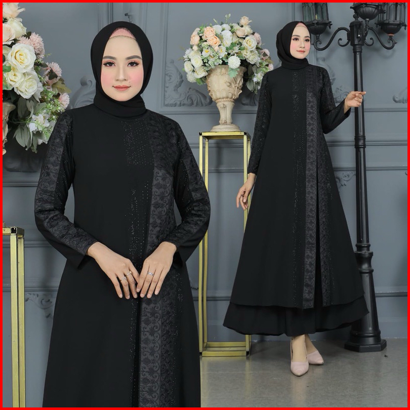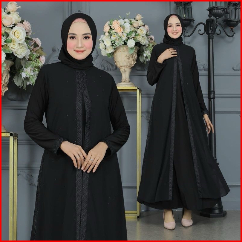 Gamis Abaya Turkey Bordir Belah Samping Full Hitam Mewah Terlaris Divvsaa.collection