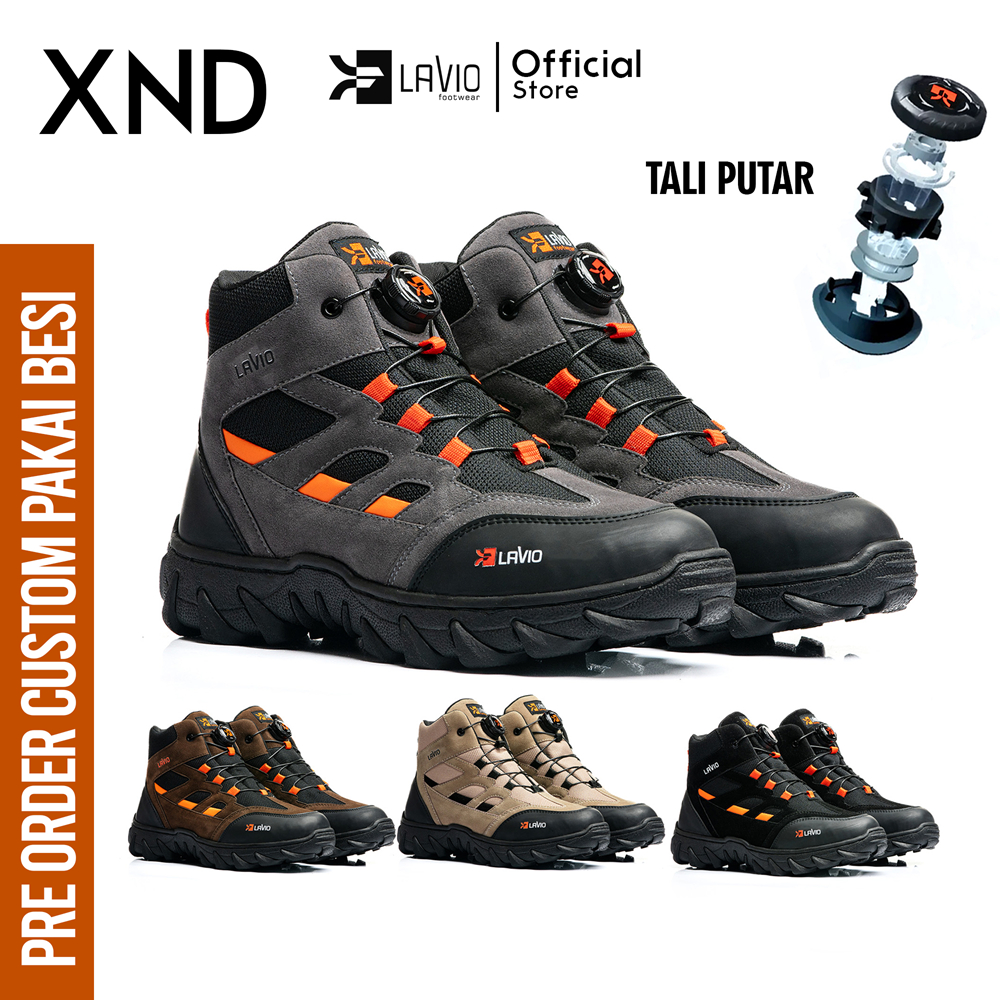 Lavio XND | Sepatu Pria Safety Ujung Besi boots kerja Tali Putar Spin-on Lacing Reflector Best Quality